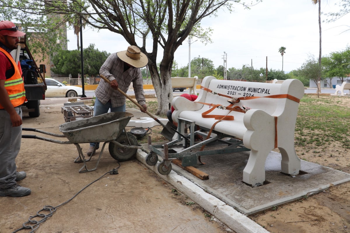 Continuamos mejorando espacios públicos. Por instrucciones de la Presidenta Municipal Profra. Iracema Albeza Peña Ramírez, se realizó la reposición de 8 bancas de granito en la Plaza Principal, esto, con el objetivo de continuar mejorando los espacios públicos. Dicha obra fue supervisada por la Alcaldesa Iris Peña, acompañada del Síndico Municipal C. Amado García Garza. Cabe mencionar que las bancas que se retiraron se encontraban con más del 50% de deterioro. Seguiremos trabajando en la rehabilitación y mejoramiento de espacios públicos. JUNTOS CONTINUAMOS AVANZANDO.