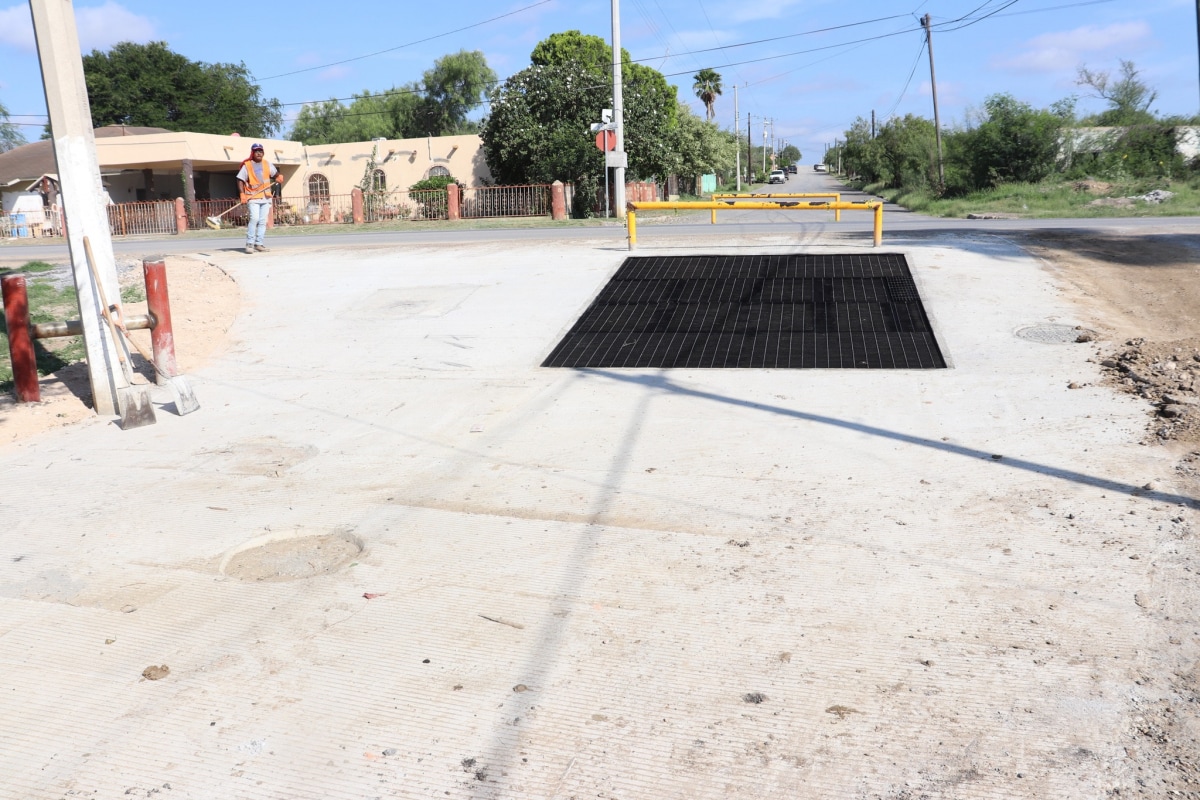 Construcción de Desagüe Pluvial. Por instrucciones de la Presidenta Municipal Profra. Iracema Albeza Peña Ramírez se llevó a cabo la construcción de Desagüe Pluvial en la Av. Gutiérrez de Lara y Calle Eduardo Chavez donde se instaló piso de concreto hidráulico y rejilla metálica en la salida del pluvial para evitar accidentes de algún traseúnte o vehículo en el desagüe. Cabe mencionar que se habilitó el acceso vehicular por ambos lados del desagüe. Dicha Obra fue supervisada por la Alcaldesa Iris Peña acompañada del Síndico Municipal y el Director de Obras Públicas.
